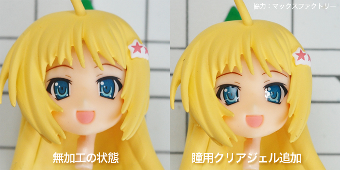 写真のように既存パーツに乗せるような形で硬化させるとクリアーパーツをはめ込んだような綺麗な仕上がりになるとのこと!