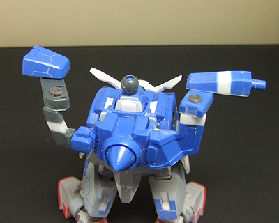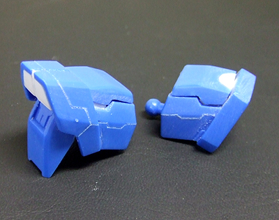 フロントはほぼそのままですが、サイドは可動出来るようにPC化。横幅に対してサイドアーマーがスカスカなため、ディテも兼ねて幅を広くしてあります。取りつけ位置もやや上方へ変更。裏ディテも追加。