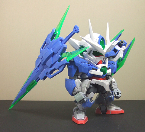 製作中にフルセイバーにしようと思い立ちまして、急きょHJを取り寄せたのですが、作例の中にSDクアンタがあってガン見しておりましたら、バックパックから足が伸びてシールドに装着するように改修されていました。