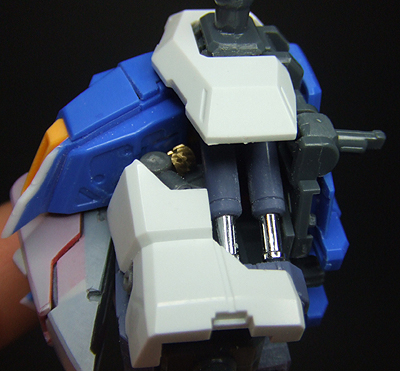 後頭部裏にもメカディテを加えて、少し上方についている肩アーマーとのバランスをとるために肩は別パーツで盛り上げています。ムーバブルフレームっぽく?^^