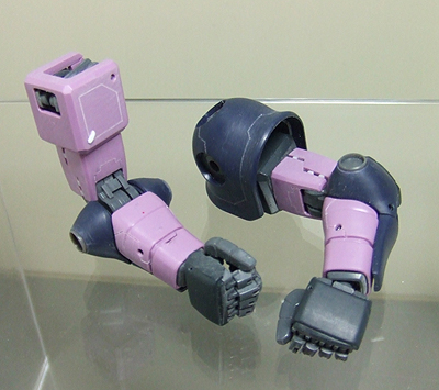 上腕はパネルラインをプラ板工作で変えて、肘はツルンとしてたので台座を設置してマイナスモールドを入れます。下腕はスジボリ等加えました。