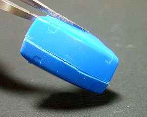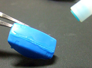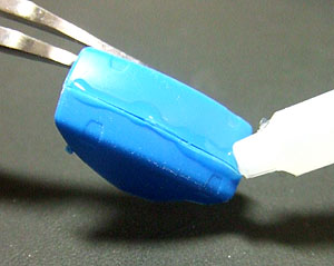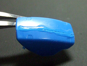 実はこの硬化剤を使う方法は以前より実践しておりましたが、普通の瞬着を使用していたのでどうしても流れてしまって思い通りの盛り具合ができませんでした。しかし、粘度が高い(←これ本当に重要です)ので慌てて硬化剤を吹く必要もなく思い通りに足りない部分を補ってくれます。しかも整形面も非常に綺麗でほぼ透明。サフを厚塗り必要もありません。