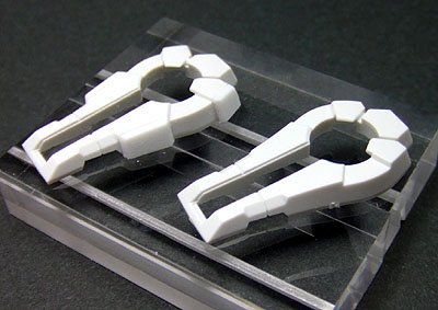 下腕部の外部装甲ですが、右が素キット、左が改修済み。